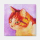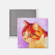 Este imán muestra mi pintura acuarela de un calico reflexivo: "Mango". Primero se me ocurrió el título y eso determinó los colores de la pintura. El verdadero gato era un calico con algunas marcas de tabiques grises. Ella es el mismo gato que el del imán "Chica de ojos verdes".