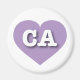 Este imán presenta un corazón de lavanda que contiene las letras audaces, blancas y altas del funda CA, la abreviatura oficial de California, el estado dorado.