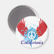 Patriótico rojo, blanco y azul, diseños abstractos de California con alas y un símbolo de paz en la coordinación de camisetas, sudaderas, botones, imanes, tazas, cadenas, bolsas de tote y más. Gran diseño para las celebraciones del 4 de julio o cualquier día que quieras mostrar tu orgullo del estado de California.