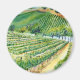 Pintura acuarela de colinas onduladas de viñas de uva en un viñedo de California.