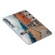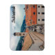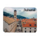 Pintura del centro de la ciudad de Dubrovnik, antigua torre y multitud. Calle atestada de turismo estrecha en el casco antiguo, Vista de tejados rojos y torre.