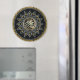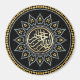 Paz y amor. Diseño único inspirado en el girasol, purpurina dorado y plateado, círculo de patrones; centrado con la frase 'Bismillah" en caligrafía árabe en el centro, para bendiciones islámicas diarias