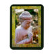 El diseño de arte digital muestra la foto de una estatua de un jardín budista rezando.