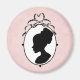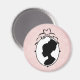 Una silueta de estilo años 60 cameo sobre un fondo rosa pálido y afligido.