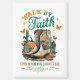 Diseño pacífico y colorido con una escena otoño/otoño con calabazas, mariposas, botas de vaquero y flores caídas. El colorido texto inspirador dice: "Camina por la fe incluso cuando no puedes ver. 2 Corintios 5:7". Este diseño está disponible en una amplia variedad de productos.