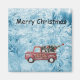 Camión rojo vintage con árbol de navidad en un fondo azul de copo de nieve, agrega tu propio mensaje. 100% Personalizable. Haga clic en el botón PERSONALIZAR para agregar, mover, eliminar, cambiar el tamaño o cambiar cualquiera de los tipos de letra o gráficos.