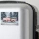 Una escena de invierno nostálgica con un camión de cosecha rosada llevando un árbol de Navidad recién cortado, con nieve cubriendo el suelo y abetos altos en el fondo. Este encantador diseño capta la calidez y la alegría de la temporada de vacaciones, combinando el encanto rústico con la alegría festiva.