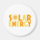El diseño de la energía solar divertida tiene el lema de la energía solar y solar en amarillo y naranja.