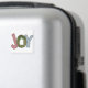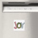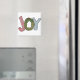 Camisetas de navidad, tazas, tarjetas, pegatinas, bolsas de té, imanes y otras prendas de vacaciones y artículos de regalo para Navidades con un brillante texto de vacaciones que dice "JOY".