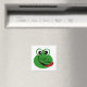 Ranas Botones de regla, cadenas de claves, tazas, ratones, polos, y más con una rana verde con ojos grandes y una lengua roja pegada y texto que dice "¡Regla de las ranas!"