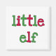 Camisetas de vacaciones de Little Elf, trajes para el cuerpo, bolsos de té y más con texto rojo brillante y verde al estilo de un niño.
