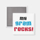 Camisetas, tarjetas, pegatinas, bolsas de té, imanes, botones y otros artículos con un diseño de texto negro, azul y rojo. Estos artículos de My Gram Rocks son una buena manera de mostrar tu amor por tu programa especial!
