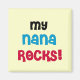 Camisetas, tarjetas, pegatinas, bolsas de té, imanes, botones y otros artículos con un diseño de texto negro, azul y rojo. ¡Estos artículos de My Nana Rocks son una buena manera de mostrar tu amor por tu nana especial!