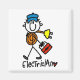 Un electricista con una figura de palo con una gorra azul sostiene un rollo de alambre y una caja de herramientas en camisetas, tazas, caramelos, tarjetas, pegatinas, llaveros, bolsas de tote y otras prendas y regalos de electricistas.