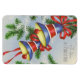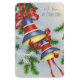 Imán de estilo flex de 4" x 6" con una imagen vintage de dos campanas rojas, azules, amarillas y blancas atadas a los arcos de pino cubiertos de nieve con arcos rojos bonitos. Vea toda la colección de imanes de vacaciones en los TOUCHES ESPECIALES| Sección Favoritos de la fiesta.