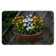 violas amarillas, violetas y blancas rosadas bien dispuestas en una cesta de madera trenzada