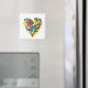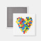 Imán con corazón hecho de coloridos dulces de chocolate.
