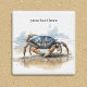 pintura acuarela de un cangrejo azul y naranja caminando por la playa