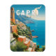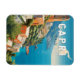 Diseño de viaje vectorial retro capri. Capri, una isla en la bahía italiana de Nápoles, es famosa por su paisaje escarpado.