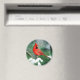 Cardenal Norte (Cardinalis cardinalis) macho en pino en el condado de Marion en invierno, Illinois | Día de Richard y Susan / DanitaDelimont.com