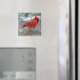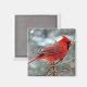 Cardenal Rojo (pájaro) en un imán de neveras con tormenta de nieve.