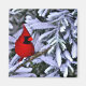 Un hermoso Cardenal Rojo descansando entre los nevados invernales.