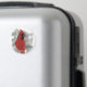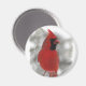 Este imán tiene un cardenal rojo brillante. ¡Él es verdaderamente el rey de los pájaros traseros! Aquí está encaramado en un riel nevado comiendo semillas negras de girasol de aceite mientras la nieve invernal gira a su alrededor.