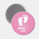 Este imán rosa personalizado ha sido diseñado teniendo en cuenta a las mujeres embarazadas y a los proveedores de cuidados. Ya sea que seas futura madre, pediatra, obstetra, profesional de la familia, comadrona o profesional de la familia, este imán personalizado es un divertido agregado a tu hogar u oficina. Con un par de adorables pies de bebé y una señal de carga debajo, este imán es un regalo divertido para una madre expectante y para aquellos que cuidan a madres embarazadas y padres y trabajan en torno a los recién nacidos.