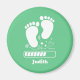 Este imán verde personalizado ha sido diseñado teniendo en cuenta a las mujeres embarazadas y a los proveedores de cuidados. Ya sea que seas futura madre, pediatra, obstetra, profesional de la familia, comadrona o profesional de la familia, este imán personalizado es un divertido agregado a tu hogar u oficina. Con un par de adorables pies de bebé y una señal de carga debajo, este imán es un regalo divertido para una madre expectante y para aquellos que cuidan a madres embarazadas y padres y trabajan en torno a los recién nacidos.