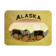 Dos toros de caribú luchan durante la rutina de caída en el extremo norte mientras el sol se pone en el fondo. También aparece el texto "Alaska". La imagen es superpuesta sobre un fondo de cuero de cerebro.