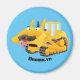 ¡Este gracioso bulldozer amarillo come suciedad! Dibujado en un estilo feliz de ilustracion personalizado con lengua y ojos para crear un personaje lindo para el nuevo obrero de la construcción!