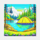 Arte de IA que representa una carpa en los pinos junto a un lago, hermosa imagen digital con tema de camping.
