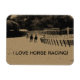 Los caballos se dirigen a casa en el barro en este oscuro diseño fotográfico de una pista descuidada. En el circuito de carreras Belmont Park Race Track, en Elmont, Nueva York, hay caballos de carreras.