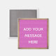 Añada su propio mensaje o un nombre a este imán de refrigerador. Este imán cuadrado tiene el aspecto de un cartel de cartón o de marquesina en color rosa magenta en un marco de madera con el texto escrito con letras blancas.