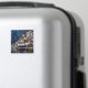 Imán fotográfico de recuerdo con las fachadas de las casas de madera en la orilla del lago de Hallstätter Ver lago bajo una capa de nieve fresca en invierno en Hallstatt, Austria.