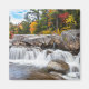 Cascada a lo largo de un río de montaña en una mañana turbia de otoño. Sorprendentes colores otoñales en segundo plano.