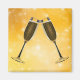 Un par de elegantes copas de champán, flautas, tocándose para un brindis elegante por su aniversario, compromiso o celebración de boda, o el comienzo de un nuevo año. Formal o informal, es hora de disfrutar de un poco de burbujas en la fiesta de cócteles. Un bonito fondo dorado completa la imagen.