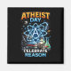 A bold and energetic tribute to Atheist Day showcases science, knowledge, and rational thought through glowing atomic symbolism and classic scientific tools.