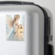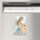 A serene winter angel stands in a gentle snowfall, holding a softly glowing lantern that casts warm light across a peaceful forest scene. Her delicate wings, embroidered gown, and hand placed tenderly over her heart evoke a feeling of comfort, hope, and quiet blessing. Soft blues, warm golds, and subtle winter florals blend together to create a dreamlike seasonal moment filled with emotion and grace. The angel’s contemplative pose and the lantern’s radiance offer a sense of guidance, stillness, and spiritual warmth, making this design ideal for winter décor, thoughtful holiday imagery, and meaningful keepsakes. AI generated artwork.
