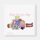 Un comprador abrumado con muchos paquetes... un imán lindo para ese comprador "profesional" en tu vida.