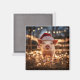 Imán cuadrado con un adorable cerdo vestido con un sombrero de Santa y rodeado de Navidades con luces intermitentes.