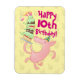 Un cerdo feliz en un imán flexible. Utilice "Personalizar esta plantilla" y cambie la edad para crear un regalo único y personalizado. Añada un regalo divertido a una tarjeta de cumpleaños, con un cerdo alegre debajo de una torta de capa tambaleante con azotes de hielo verde y coronado con velas rosas.