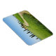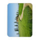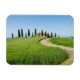 Imán fotográfico rectangular con un camino curvado a través de los cultivos de granos hacia una casa de campo con una hilera de cipreses frente a ella cerca de Pienza en el valle Val d'Orcia en Toscana, Italia.