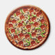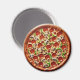Imán de comida divertida y divertida con una deliciosa pizza de pepperoni con champiñones y pimientos verdes.
