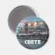 Chania Crete Greek Islands celebra los felices recuerdos de esta maravillosa isla. Foto del puerto de Chania con hoteles y tabernas, junto con la palabra Creta en tipografía divertida.
