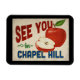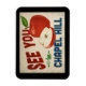 Un encantador imán de refrigerador vintage de la pared de viajes Chapel Hill North Carolina con una hermosa manzana roja, junto con un divertido texto de estilo retro que dice: "Nos vemos en Chapel Hill"