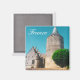 France French Chateaux Architecture City View Cityscape Magnet para añadir a su colección de recuerdos de viaje. Un regalo/regalo genial para todos los que aman el diseño único personalizado de artículos personalizados, vibraciones positivas, vacaciones, viajes, Europa, destinos populares, tema francés, colores alegres de amor, huellas ocupadas, etc. Explora, viaja, país, destino, descubre.