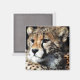 Imán cuadrado con una imagen de la cabeza de un guepardo magnífico. El chita es un gran felino (familia Felidae, subfamilia Felinae) que vive en la mayor parte de África y partes de Irán. Se la considera vulnerable, y se enfrenta a diversas amenazas, entre ellas la competencia con otros carnívoros y la depredación por ellos, un acervo genético con muy baja variabilidad y la persecución por parte de la humanidad.