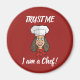 Cabeza del chef con gorra, pañuelo rojo y texto personalizado.