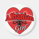Leuke magneet se encontró con hart afgebeeld se encontró con el vlag erop albanés. Estado de Op de tekst: El chica albanés De achtergrond está en el ingenio de kleur. Leuk om the geven als cadeau of voor jezelf om te laten zien dat je trots bent om Albanees te zijn. kleuren: zwart en rood.